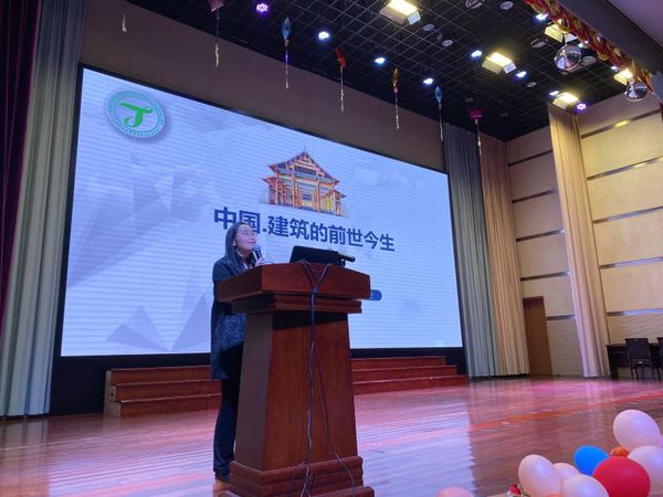 讲座的主题为《中国▪建筑的前世今生》,介绍了中国古建的起源与构造、中国近现代建筑的变革及当前智能建筑的发展。沈老师的讲座深入浅出,既专业又生动,所讲内容都是中学课本里没有的知识,同学们听得津津有味,勾起他们对于建筑专业的浓厚兴趣。