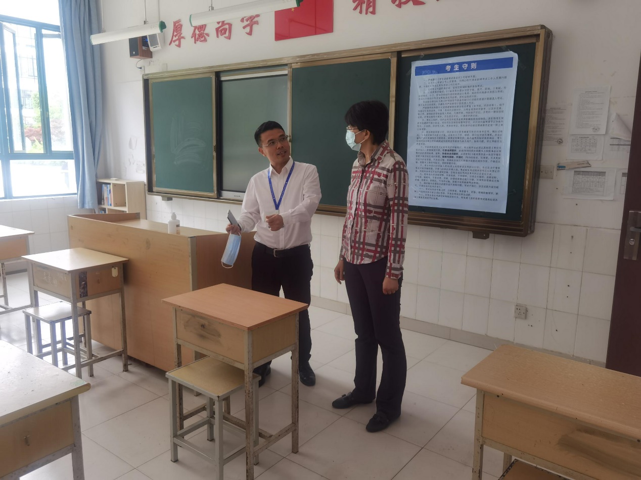 5月20日下午,教育局局长周志芳、副局长项春雷、高等教育与职业教育处处长沈文、苏州教育考试院院长李东升一行来我校视察本次考务工作的准备情况。我校党委书记、校长郝云亮,谢永东副校长,教务处张建雄处长,后勤处陶启栋处长,保卫处张帅处长陪同检查。郝校长就本次考试基本情况、考务工作准备、疫情防控布置等三个方面进行详细汇报,检查组一行实地察看了考务办公室、试卷保密室、考场及学生休息室的布置情况。最后,周局长充分肯定了学校各方面的准备工作,同时指出,考务组织工作要以服务学生为重点,用心做好疫情防控和考试各项准备工作,既要防疫情,又要防舞弊,确保疫情防控和考务工作平稳有序推进。