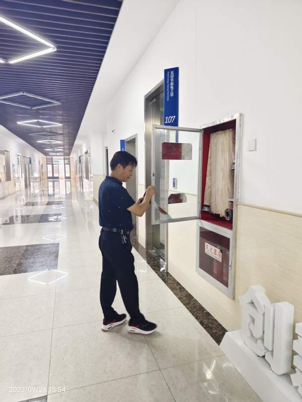 本次检查范围全方位覆盖工种实训楼、轨道实训楼、建筑实训楼、综合实训室楼、汽车实训中心、多媒体教学楼、图书馆。检查内容主要包括消防安全、防火疏散、环境卫生、用电安全、危险物品存放等安全问题。从对各实训室的实地检查情况看,各实训室安全管理状况良好,能够严格落实安全工作相关要求,有个别实训工作室存在墙面破损、地砖裂缝、地插翘起等问题。针对上述情况,检查组要求相关专业学院务必提高安全责任意识,及时整改已发现问题,确保安全管理零事故。检查组同时要求各专业学院做好中秋、国庆假期实训室的安全管理工作,所有实训室要做好水电关闭、门窗锁闭,充分做好防火、防盗等安全工作。