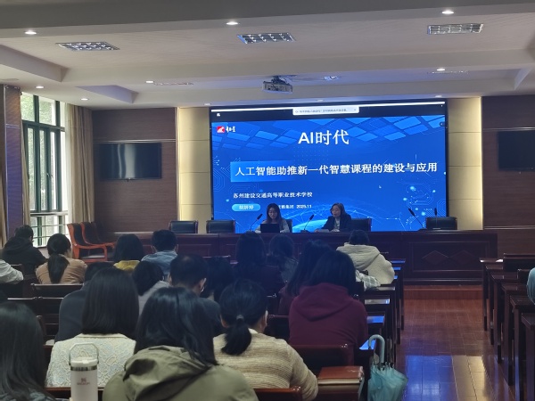 为积极应对教育数字化浪潮,助力学校职业教育数字化转型,提升教师运用人工智能技术优化课程建设与教学应用的能力,11月7日下午,教学管理处在教育园校区教学B楼102会议室成功举办了“AI人工智能助推智慧课程建设与应用”专题师资培训讲座。本次讲座特邀超星泛雅集团资深AI智能工程师胡妍婷女士担任主讲,会议由教学管理处沈淑娴副处长(主持工作)主持,近百名教师参与学习。